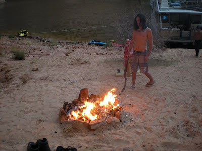 our houseboat had a slide. we showered/shaved by sudsing up on the boat and going down the slide into the water! this is me with shaving cream and a razor.